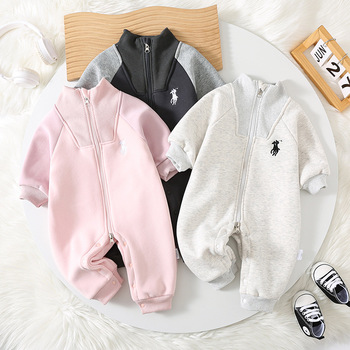 Комбинезон из натурального хлопка для младенцев, Корейская версия, весенне-осенний бархатный Детский костюм, вязаный модный в иностранном стиле